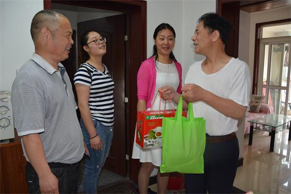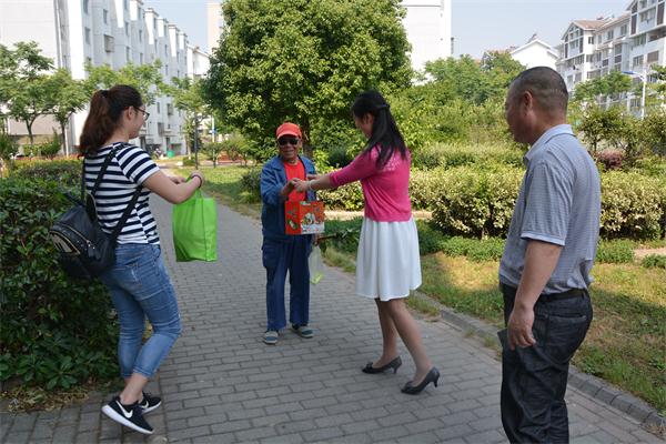26日上午,慰问小分队一行人分别来到凤凰家园、新城花园给住在那里的孤寡老人茆金富、王金亮、陈秀英等带来了鸭蛋、粽子、绿豆等慰问品,提前送上了端午节的祝福和一份清凉。老人们早早的就在家等着,对我们的到来表示很热情,茆师傅说:“每年你们都会来,慰问物品很实用,也很需要,谢谢你们“。